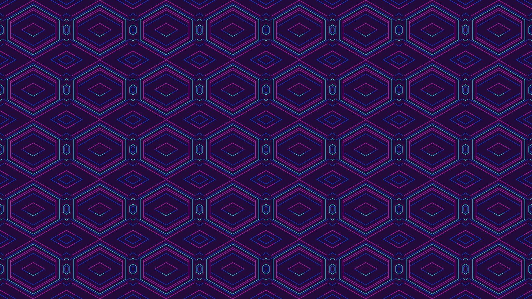 Glowing purple and blue geometric hexagon pattern with symmetrical layout on dark backdrop Pro Vector
