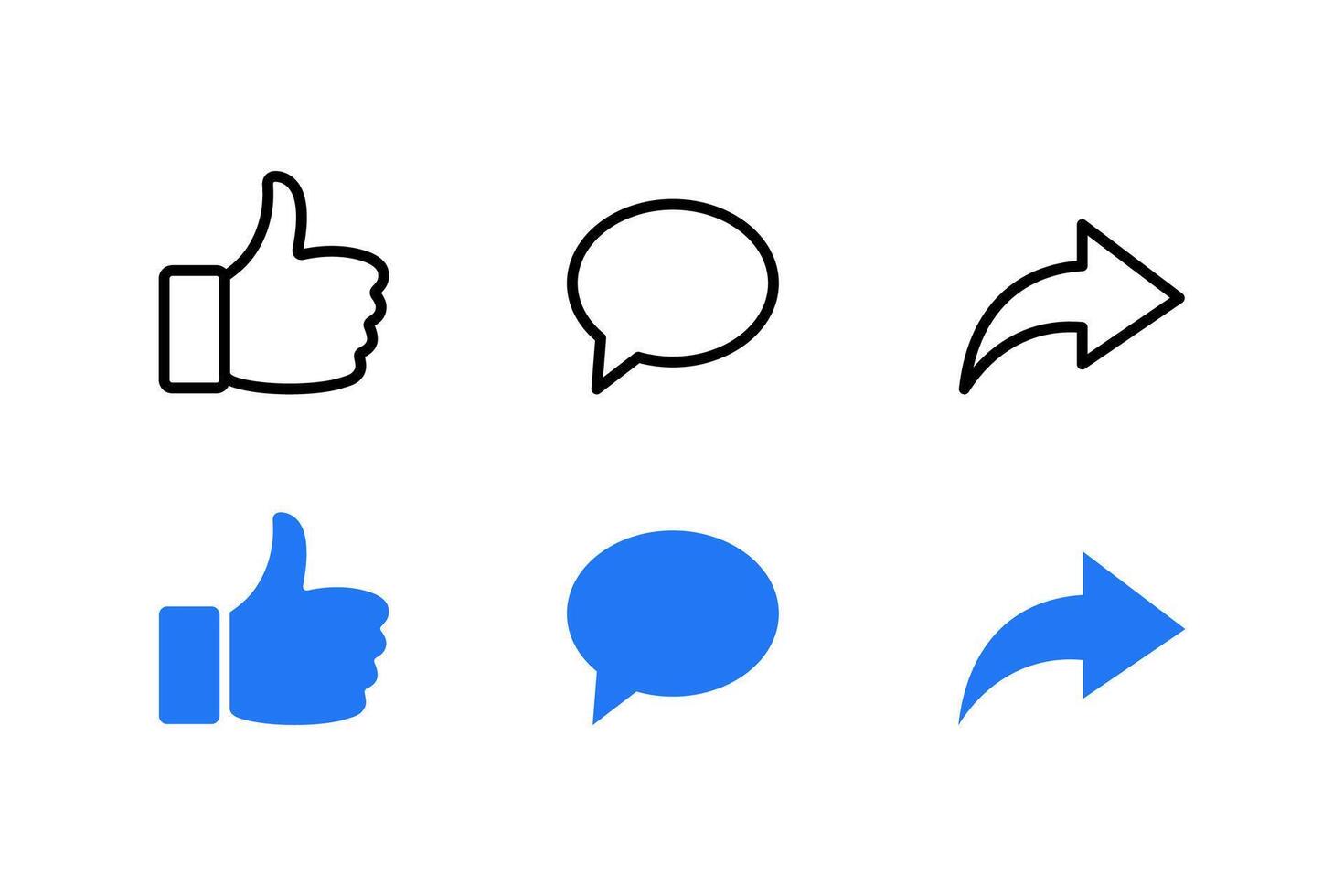 Social media interface icon set. Like, Share, and comment icon button Pro Vector
