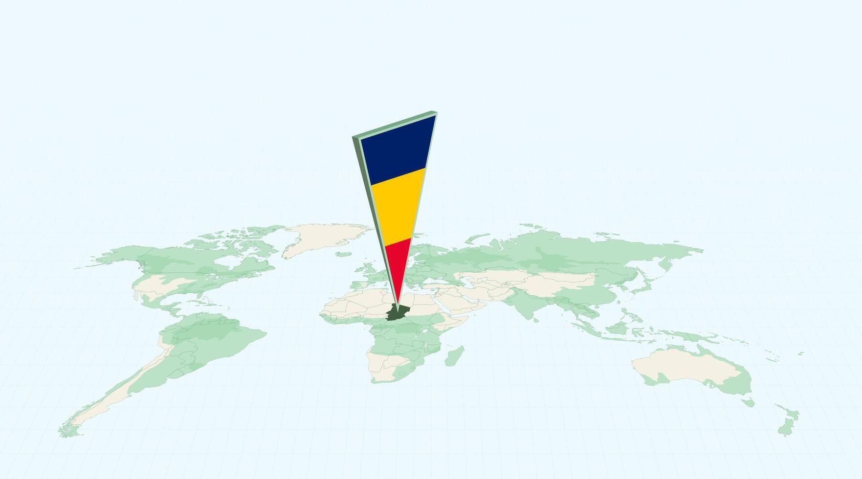 Highlighted Chad on Global Map with 3D Flag Location Pin of Chad. Pro Vector