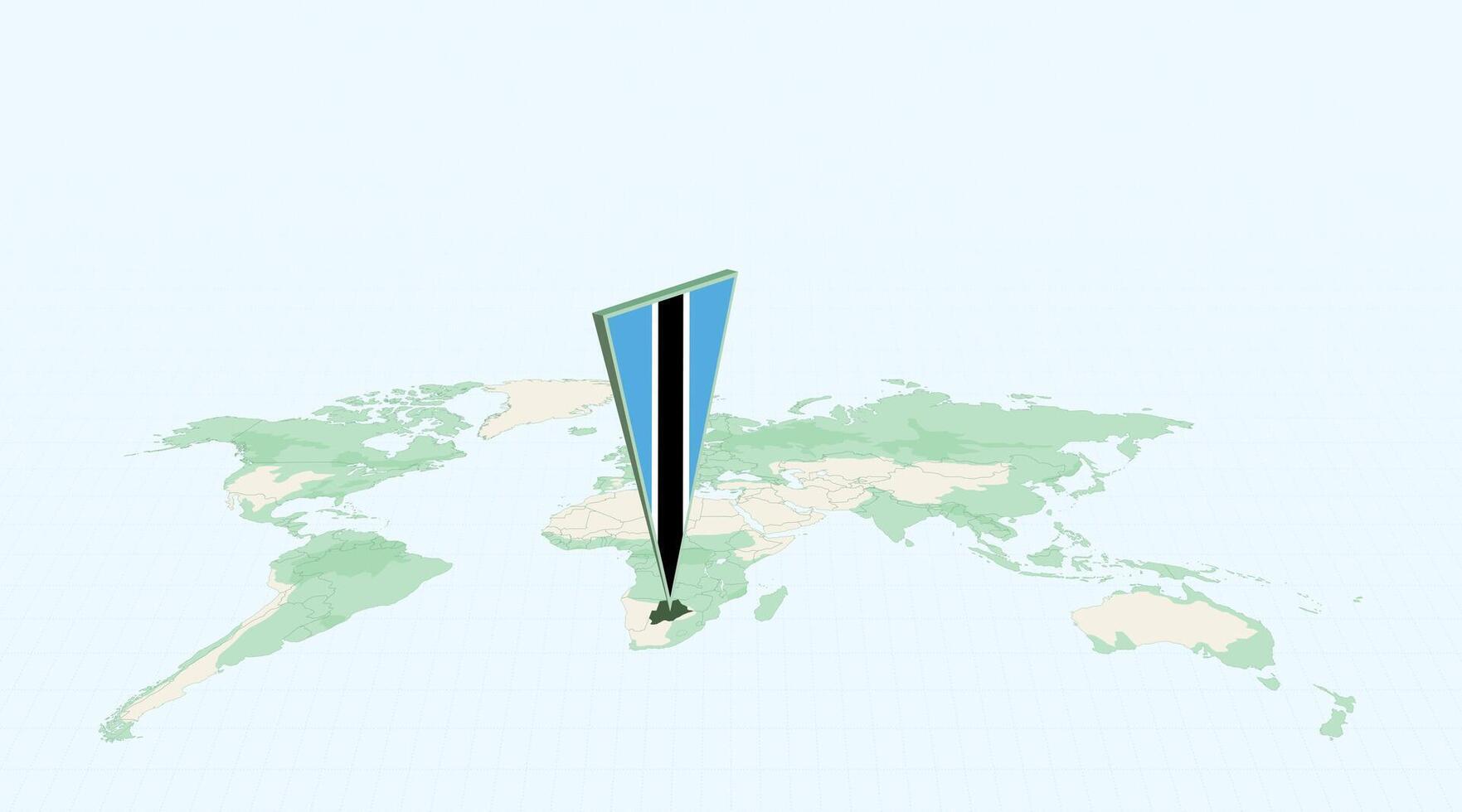 Highlighted Botswana on Global Map with 3D Flag Location Pin of Botswana. Pro Vector