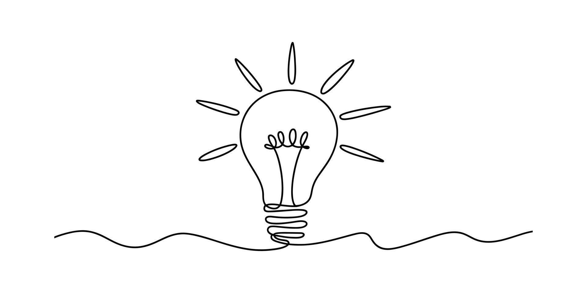 Lightbulb continuous line drawing on white background, minimalist concept and idea illustration Pro Vector
