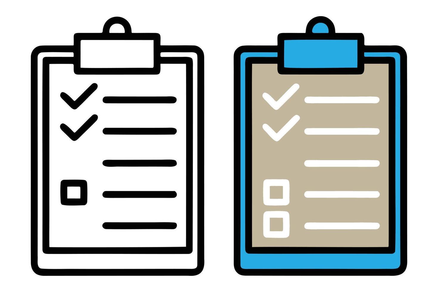 Two clipboard icons with checkmarks and lines silhouette isolated on white background vector