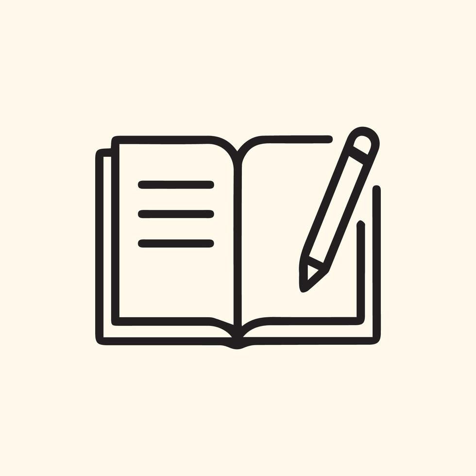 Simple Outline Icon of an Open Book with a Pencil Ready to Write or Study Pro Vector