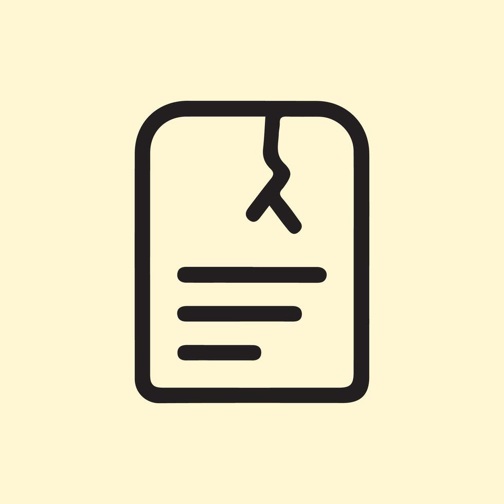 Simple Icon of a Damaged Document Representing File Error or Broken Data Pro Vector
