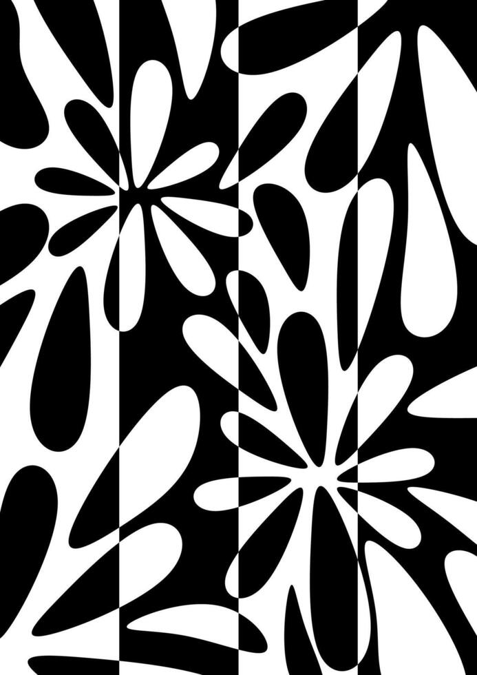 Bold black and white abstract pattern featuring organic shapes radiating from a central point, creating a dynamic and modern graphic design element. Pro Vector