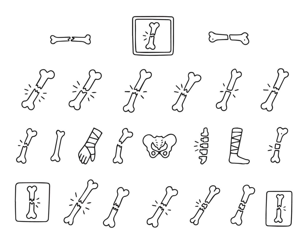 Bone line icons set. Bone fracture symbols. Design elements for medical diagram or website. Simple outline collection isolated on white background. illustration Pro Vector