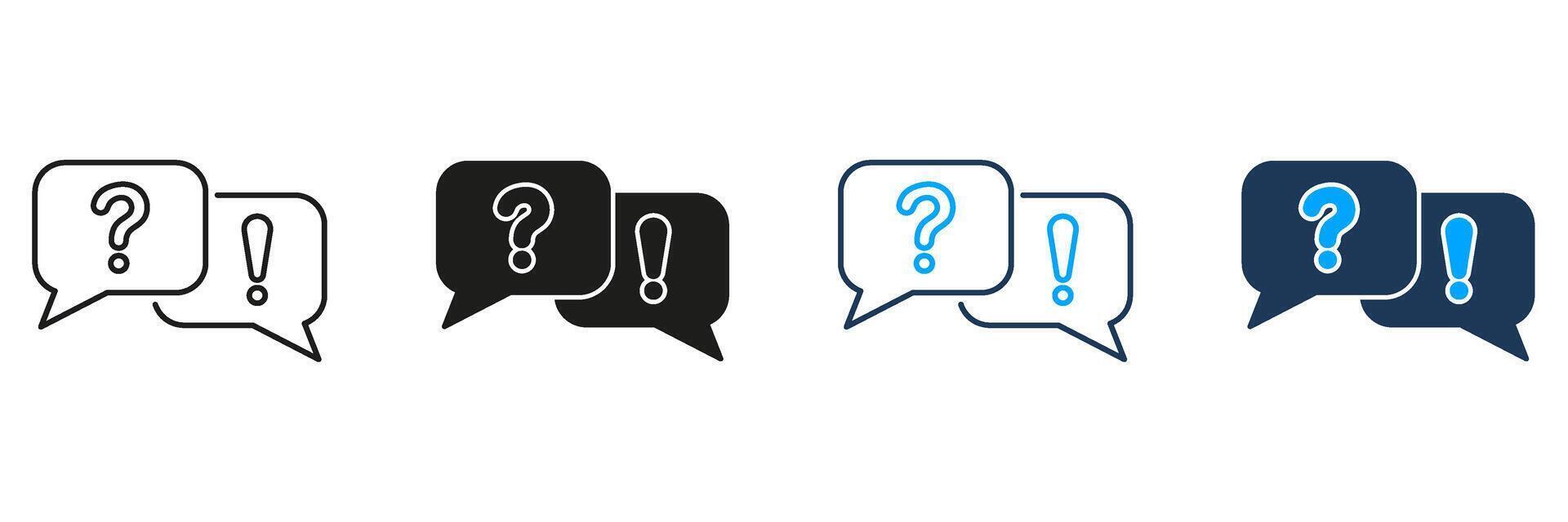 Question And Exclamation Speech Bubbles Line And Solid Icon Set. Communication, Inquiry, And Response Symbol Collection. Dialogue And Interaction. Isolated Illustration Pro Vector