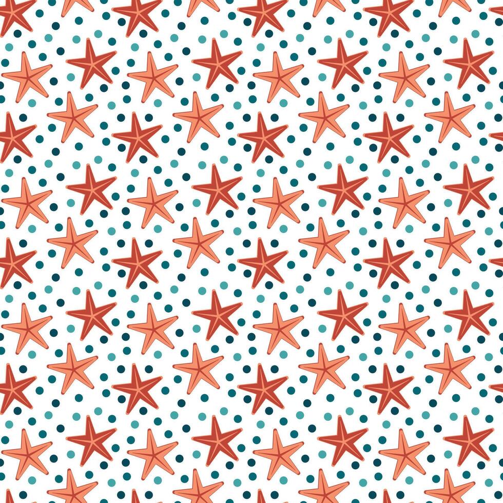 Seamless pattern with a starfish and bubble. Repeating background of sea life and water. Pro Vector