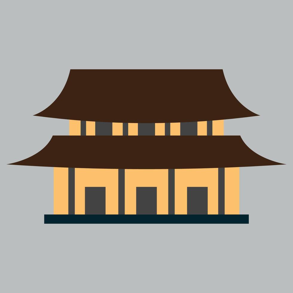 Simple Asian Pagoda Illustration with Distinctive Roof Design and Architectural Elements Displayed on a Grey Background Flat Design vector
