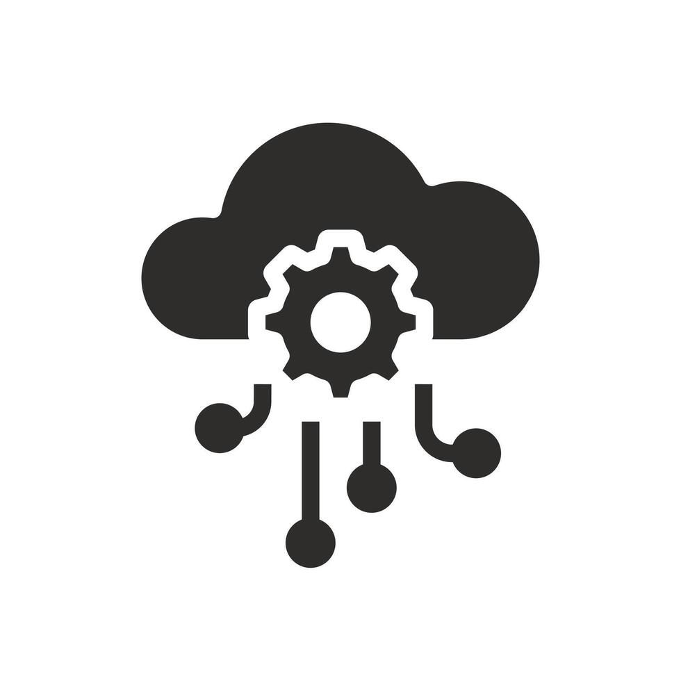 cloud integration with gear, api software icon, hosting server, framework concept, flat illustration Pro Vector