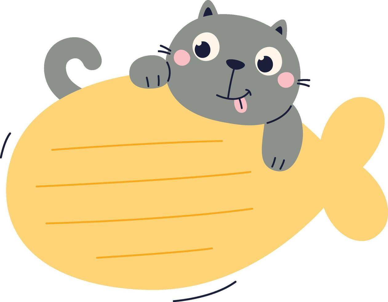 Notebook Sheet With Cat Flat Illustration Hand Drawn Icon Pro Vector