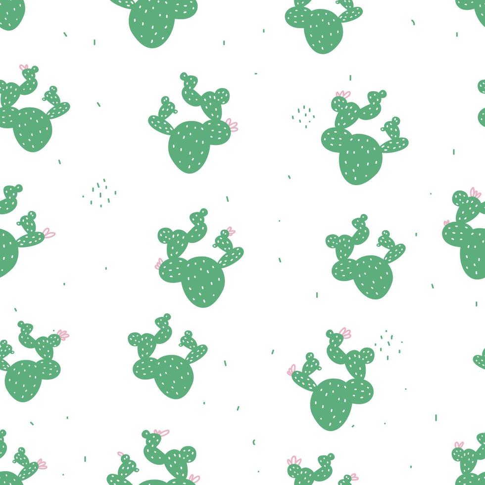 Cute seamless pattern with cactus and abstract elements. Repeating hand drawn background in the bohemian style. Trendy vector design