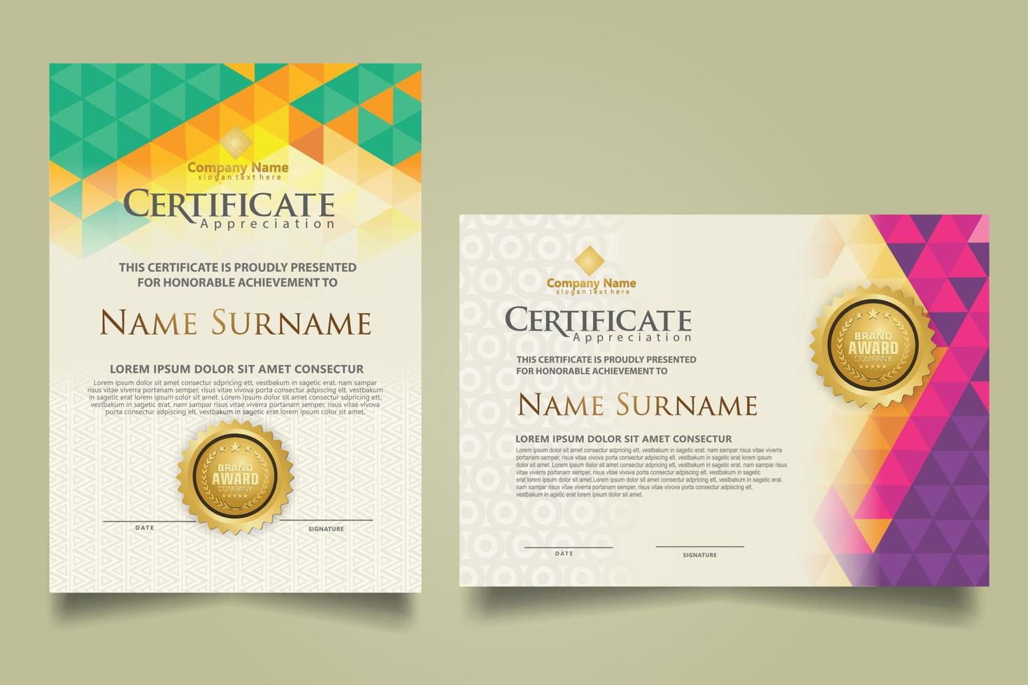 Set certificate template with triangle geometric polygonal background Free Vector