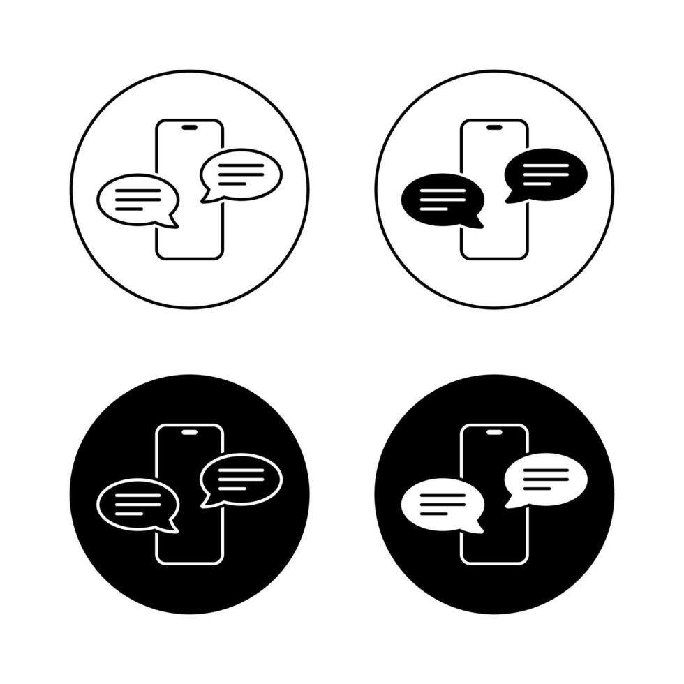 Chat message icon on smartphone screen. Text conversation symbol on phone display in black circle Pro Vector