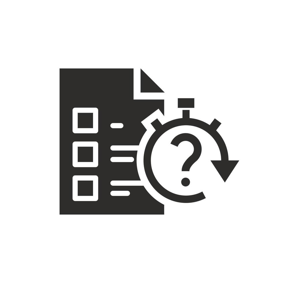 test with a answer time icon, quiz, question and report quick, flat illustration Pro Vector