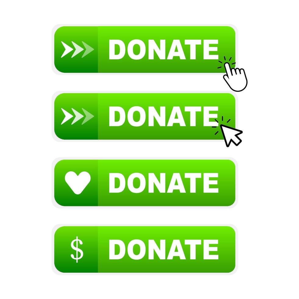 Green Donate buttons with icons and cursor click. illustration Pro Vector