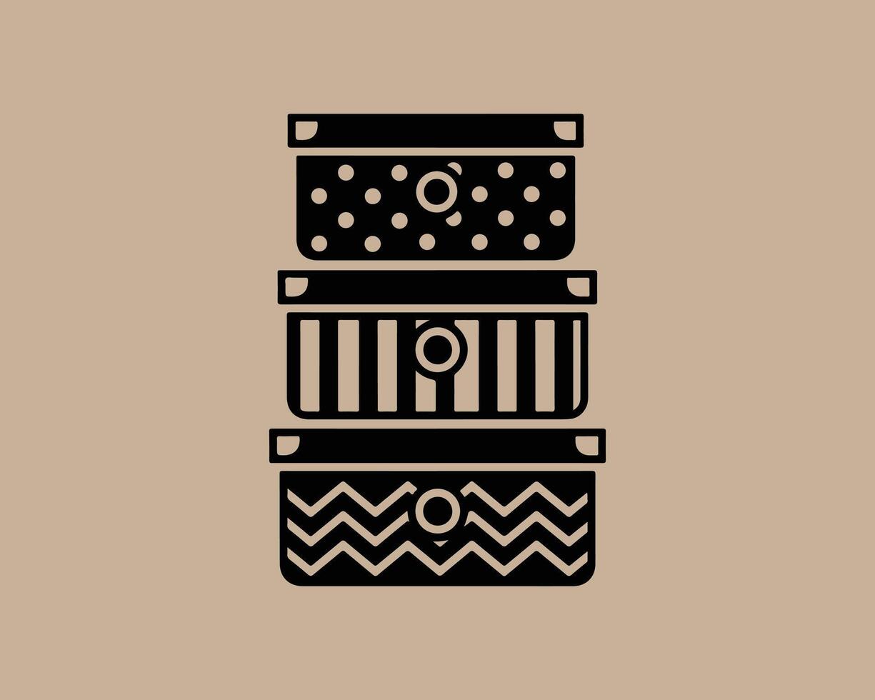 Three stacked decorative gift boxes with unique patterns and lids vector
