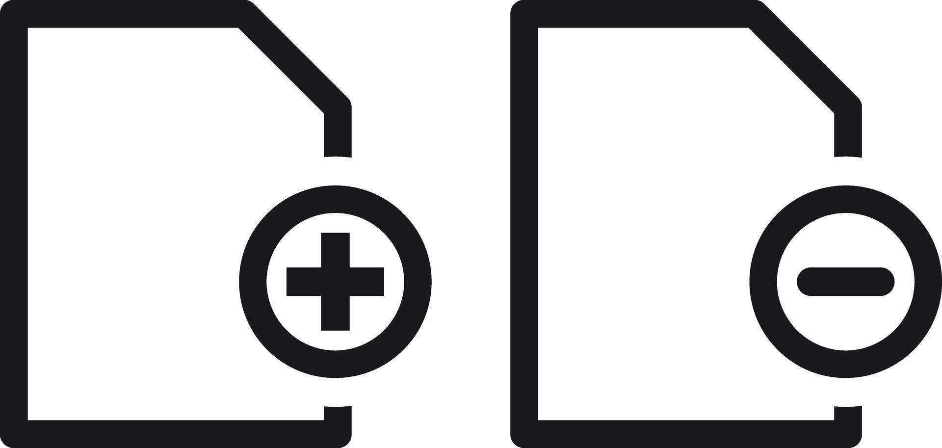 Add and delete file icon set isolated on white background . Add and remove document icons . illustration Pro Vector