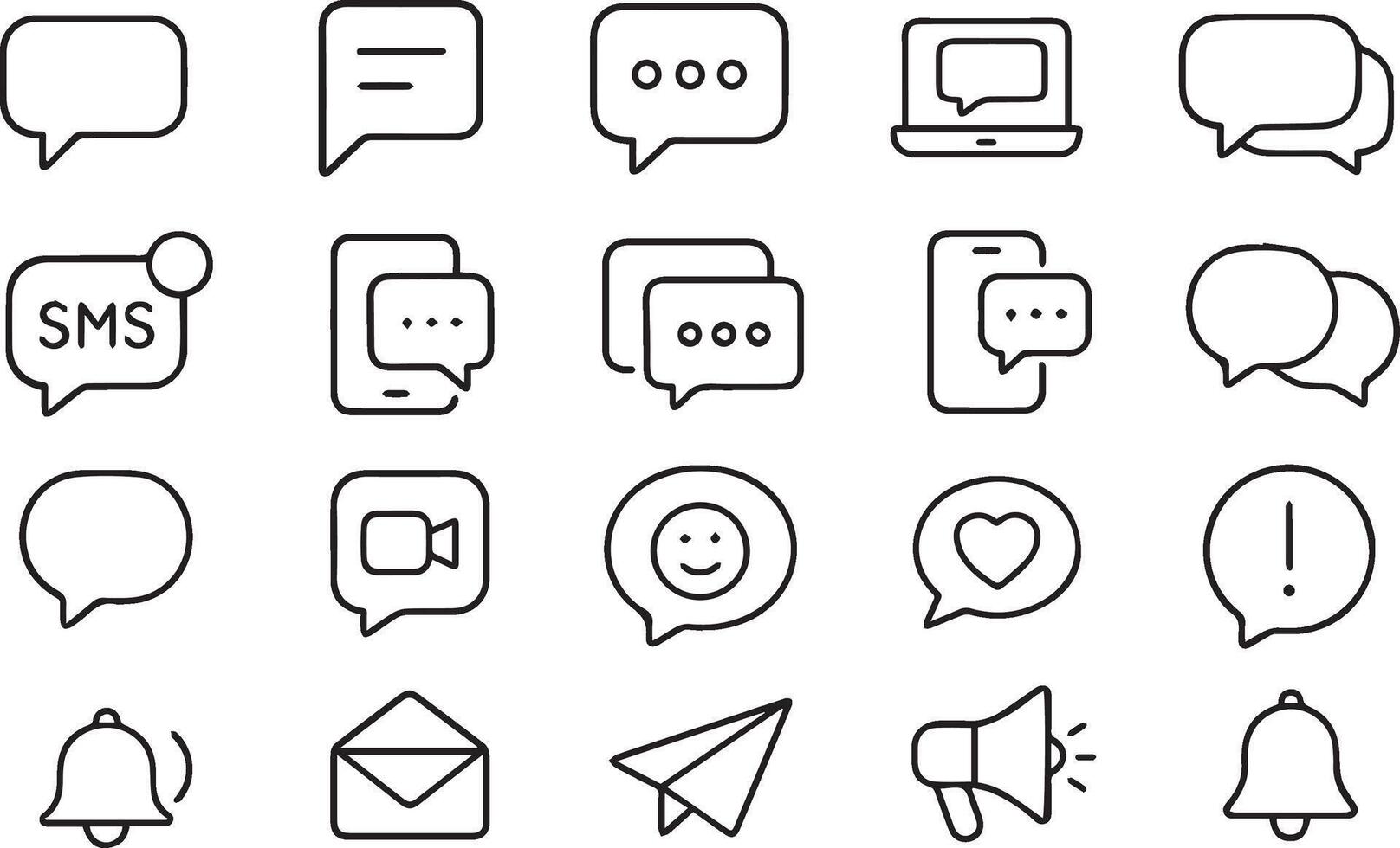 Message Talk Chat Speech Bubble Editable Stroke Outline Icon Set Pixel Perfect art Icons for SMS, Dialogue and Communication vector