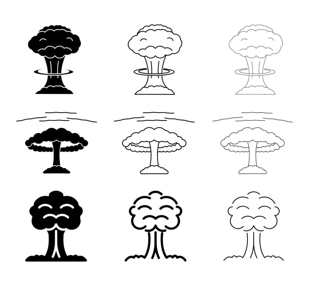 Nuclear explosion shot icon set. Editable line vector. Flash shock wave. Flat style trendy explosion icon set. Template for application, user interface and logo, vector illustration Pro Vector