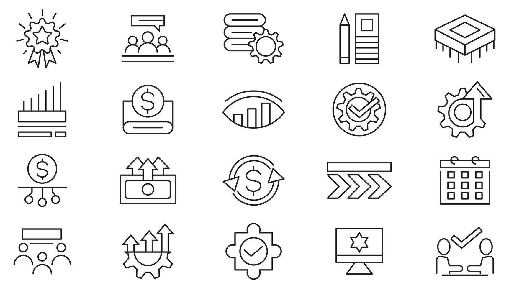 Operations line icon set. Gear, adjustments, setup, preferences, containing options, controls, service, automation, productivity line icon set Pro Vector