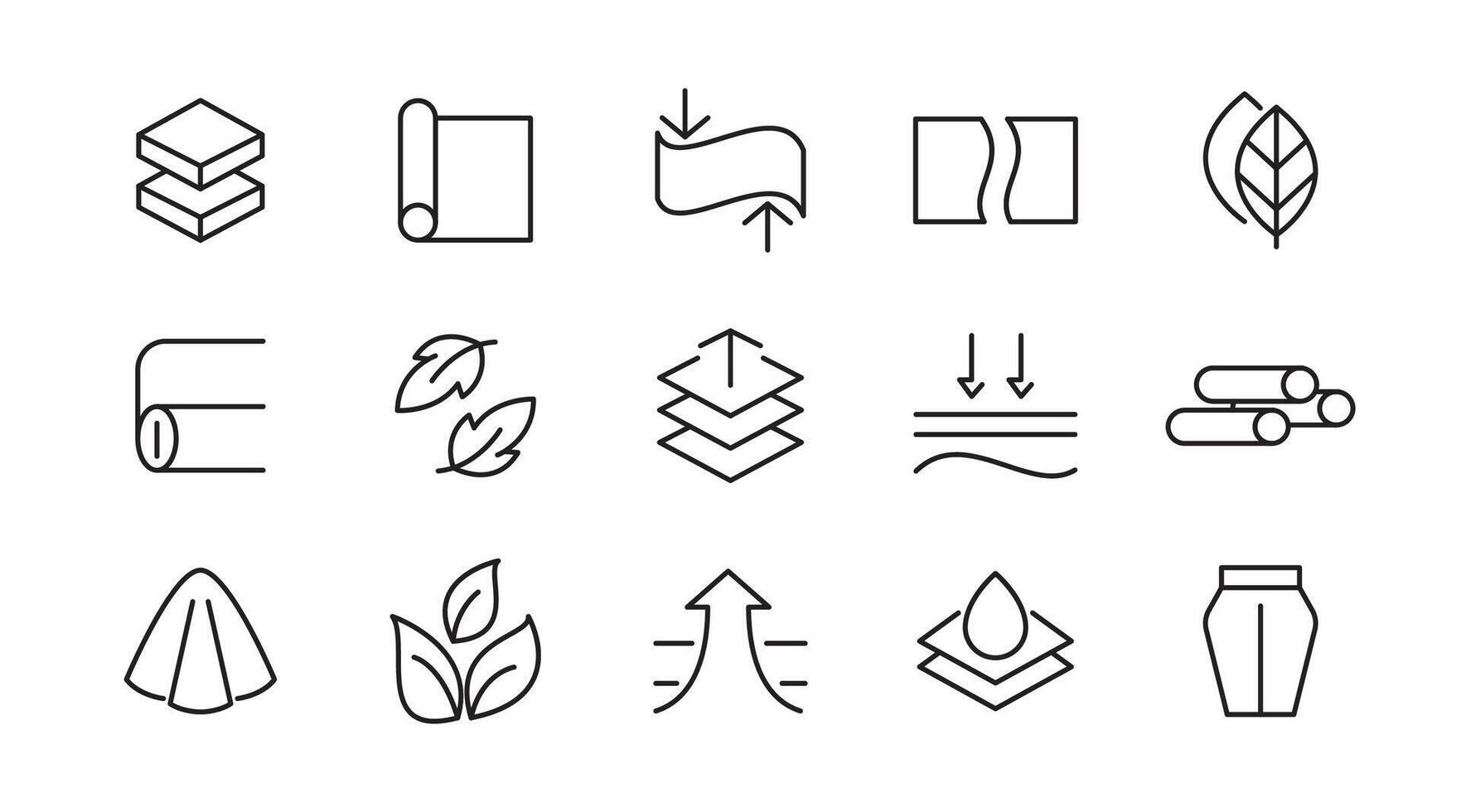 Febric Metarial line icon set. Fabric features, materials, fabric business, protection, breathable, lightweight, outline, leather, silk, synthetics, wool line icon set. UI thin line icon Pro Vector