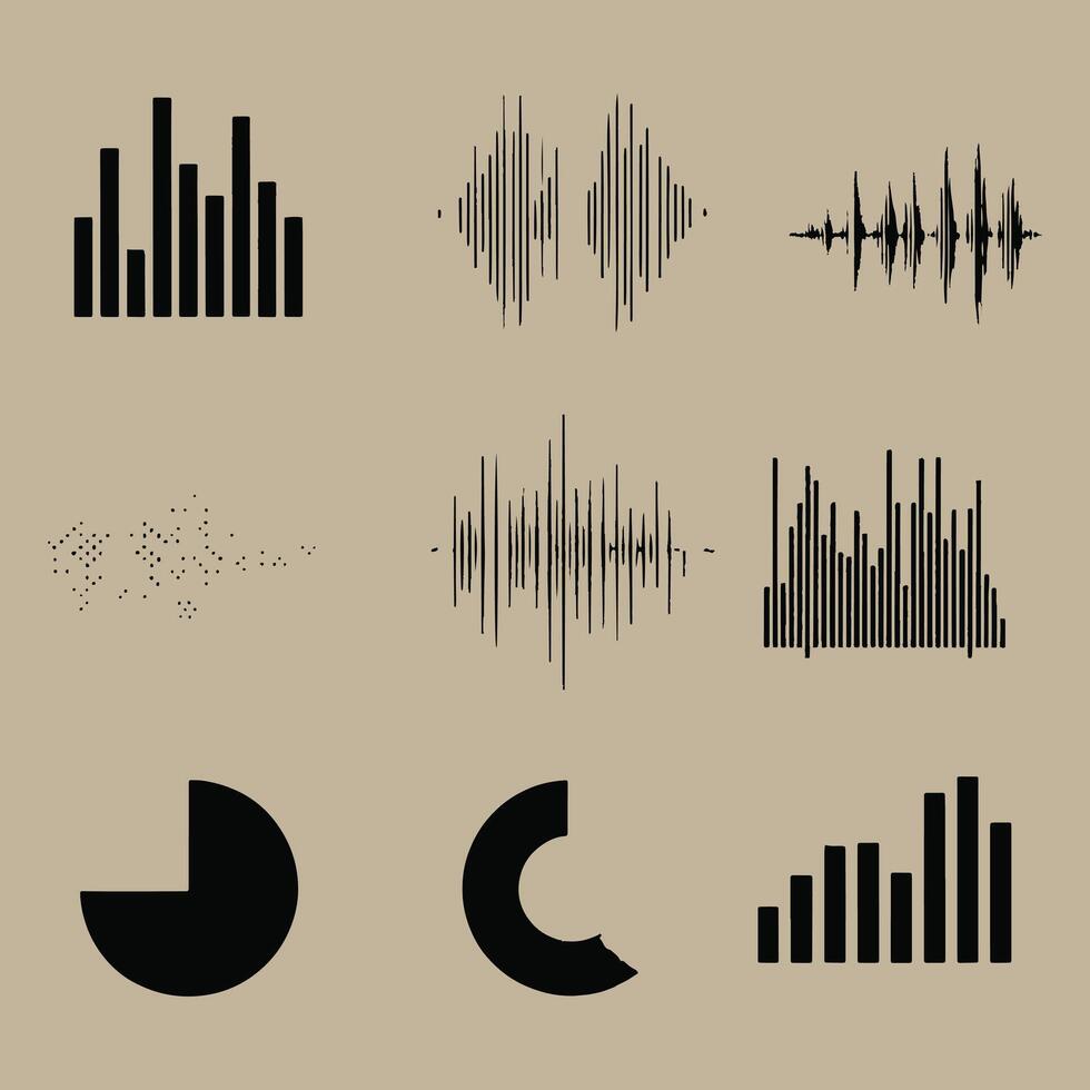 Abstract graphic representations of sound waves and data visualizations . vector