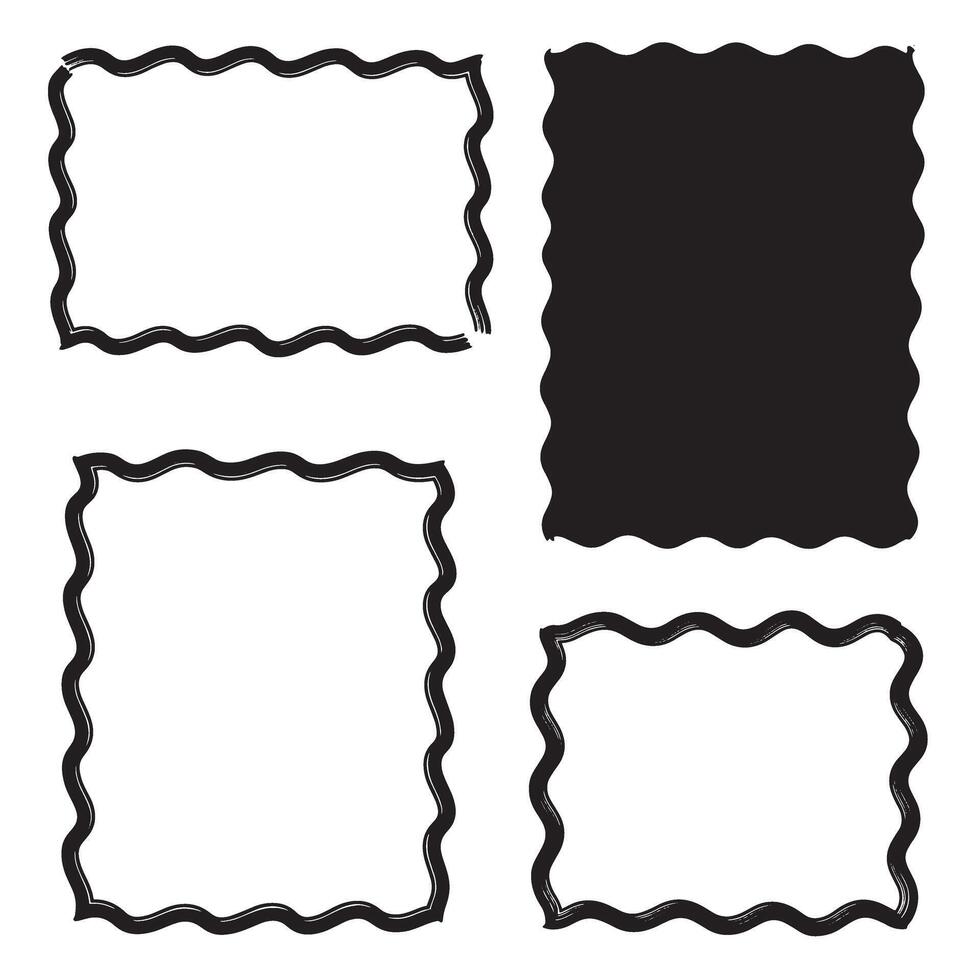 Set of hand drawn wavy frames and a black filled background for design elements Pro Vector
