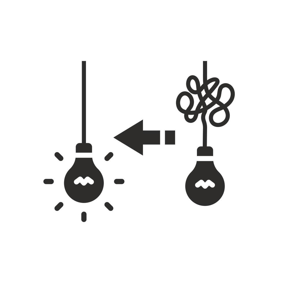 untangle and turn on lightbulb icon, solving a complex problem, process or understand idea, simple solution, flat symbol on white background - illustration Pro Vector
