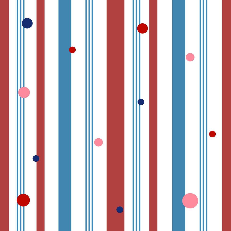 Seamless pattern with red and navy vertical stripes and polka dots vector