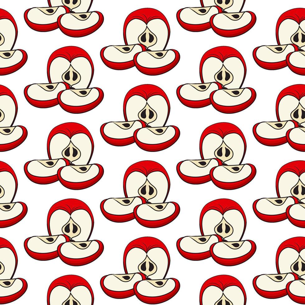 Half of a red apple and two slices. Seamless pattern. Pro Vector