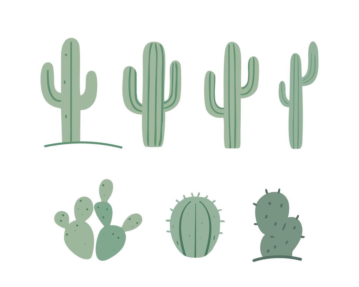 Collection of Stylized Green Cacti with Distinctive Shapes and Textures. Pro Vector