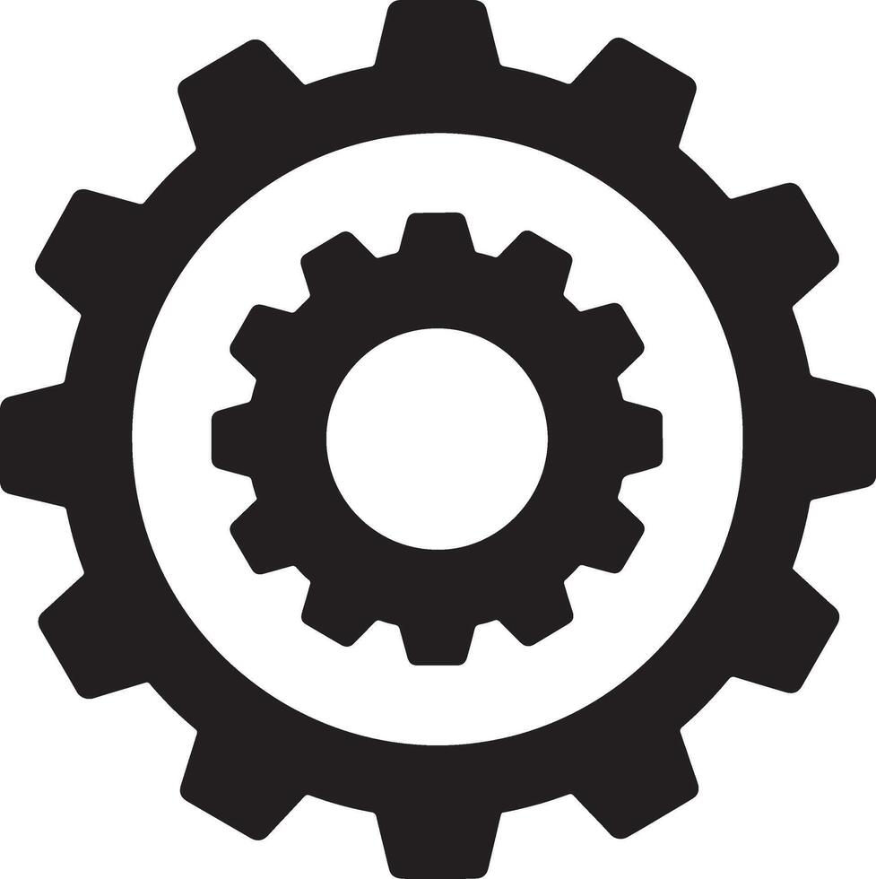 Powerful Black and White Gear Icon Symbolizing Interlocking Mechanisms, Efficient Teamwork, and Seamless Industrial Processes vector