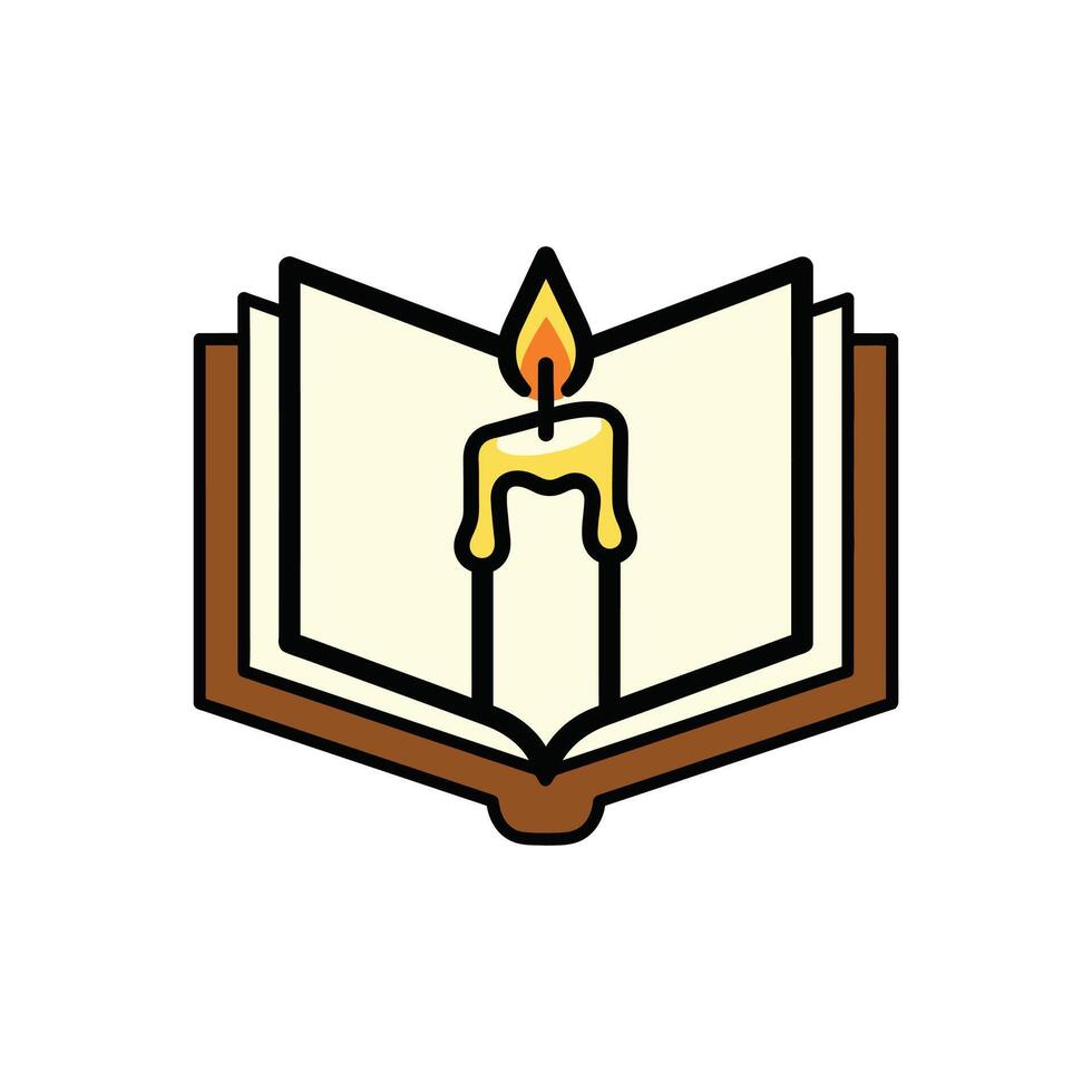 Open Book with Candle Flame Icon Symbolizing Knowledge and Illumination. Pro Vector