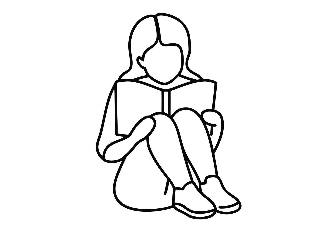 Elegant continuous single line art depicting a girl engrossed in reading a book from her back view suitable for advertisements and banners Pro Vector