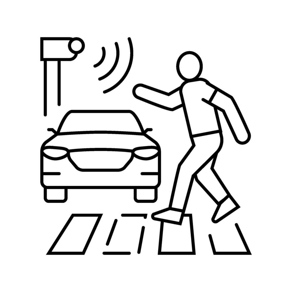 pedestrian detection autonomous vehicle line icon component Pro Vector
