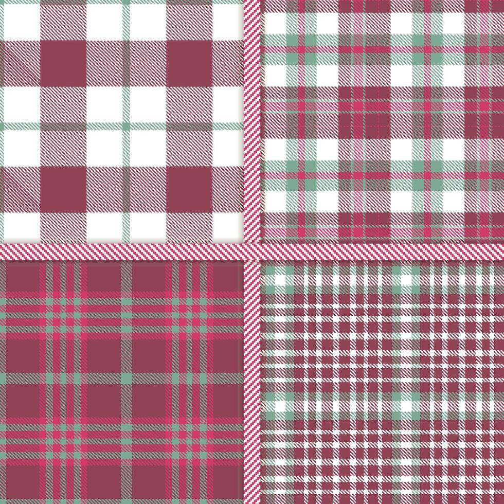 Tartan Plaid Patterns Set of 4 in Fuchsia, Celery and Greenish Beige Pro Vector