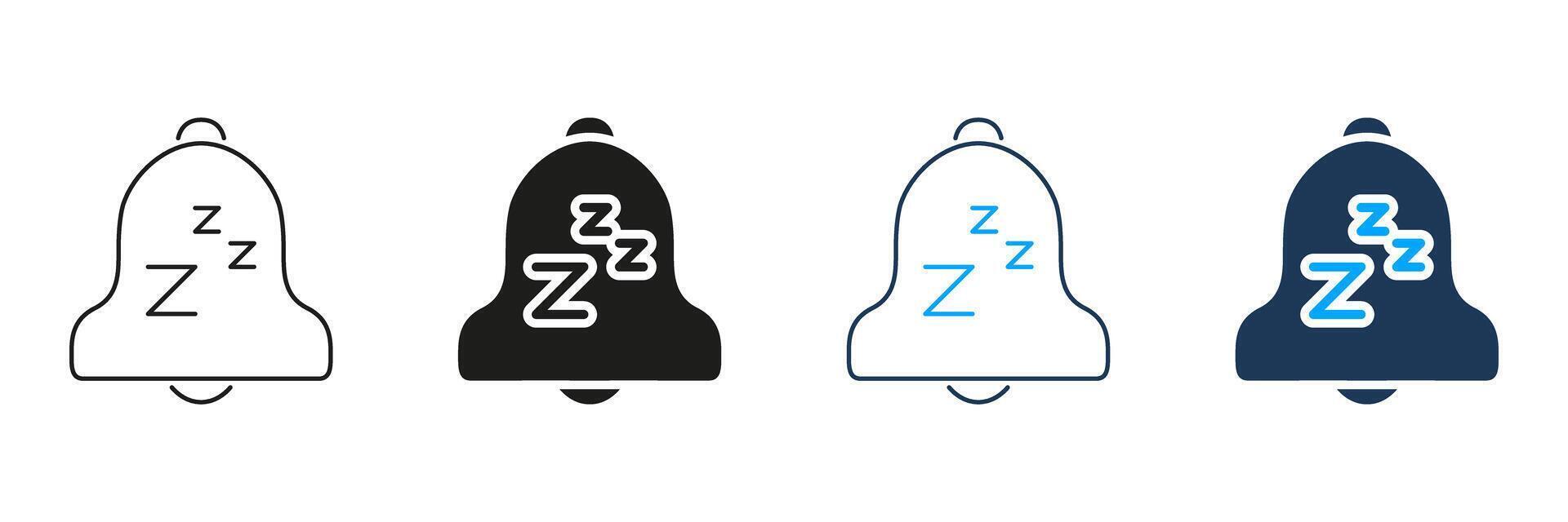 Bell With Sleep Symbol Line And Solid Icon Set. Notification Silence, Do Not Disturb, And Sleep Mode Symbol Collection. Alert Management And Restful Sleep. Isolated Illustration Pro Vector