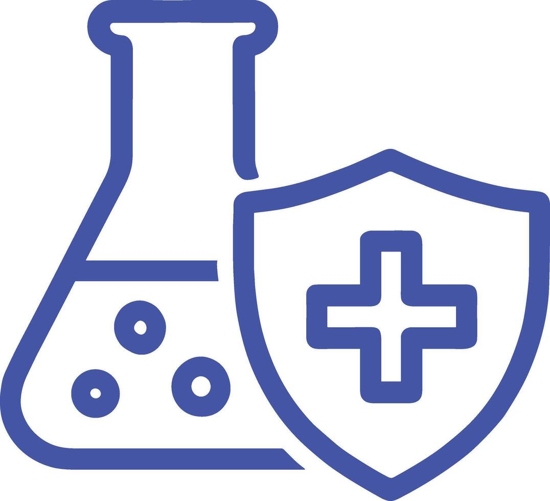 Line Icon of Laboratory Flask with Medical Shield and Cross for Science and Healthcare Themes Pro Vector