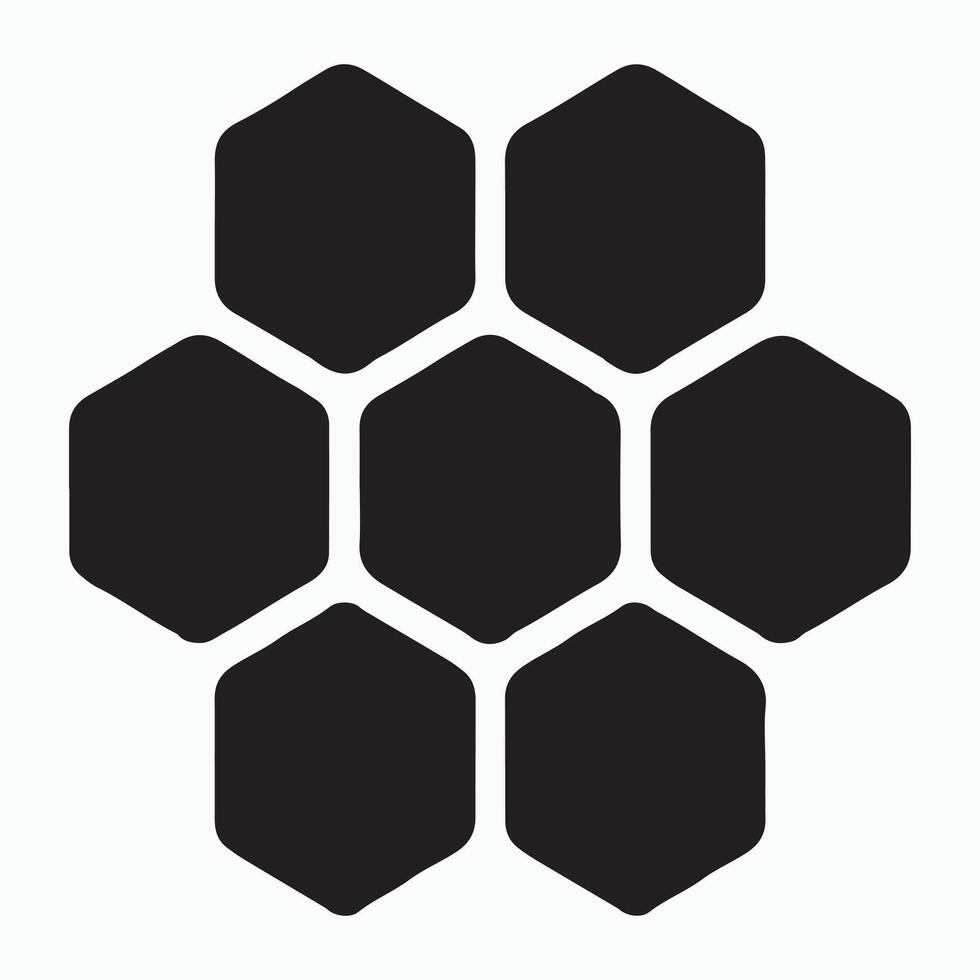 Geometric pattern of seven black hexagons arranged in a cluster Pro Vector