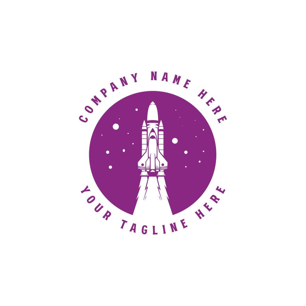 Circular Rocket Launch with Moon Planet for Universe Space Logo Design Pro Vector