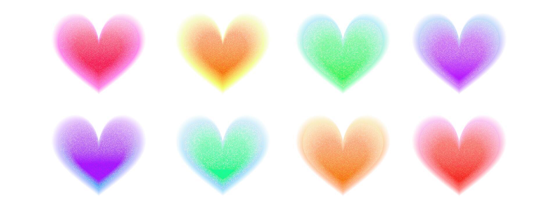 Heart gradient shape set with Y2K blur effect. Gradation figure collection featuring noise pattern and grain background elements. . Pro Vector