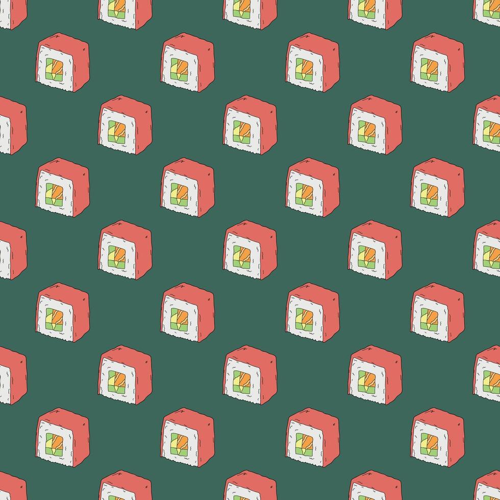 Seamless pattern with sushi roll for decorative print, wrapping paper, menu, wallpaper and fabric wrapping paper Pro Vector