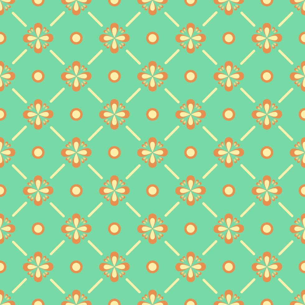 Seamless floral pattern with geometric stylized flowers. Can be used to fabric design, wallpaper, decorative paper, web design, etc. Swatches of seamless patterns included in the file. Pro Vector