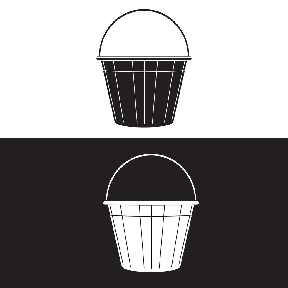 Black and White Silhouette of a Bucket with Handle on Split Background pail container vector