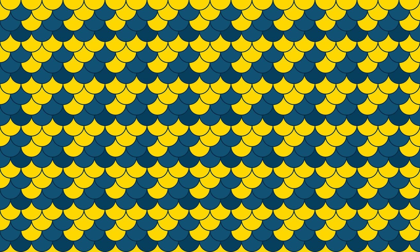 Vibrant geometric pattern featuring interlocking scales in sunny yellow and deep teal. Perfect for backgrounds, textile designs, or adding a touch of playful sophistication to any project. Pro Vector
