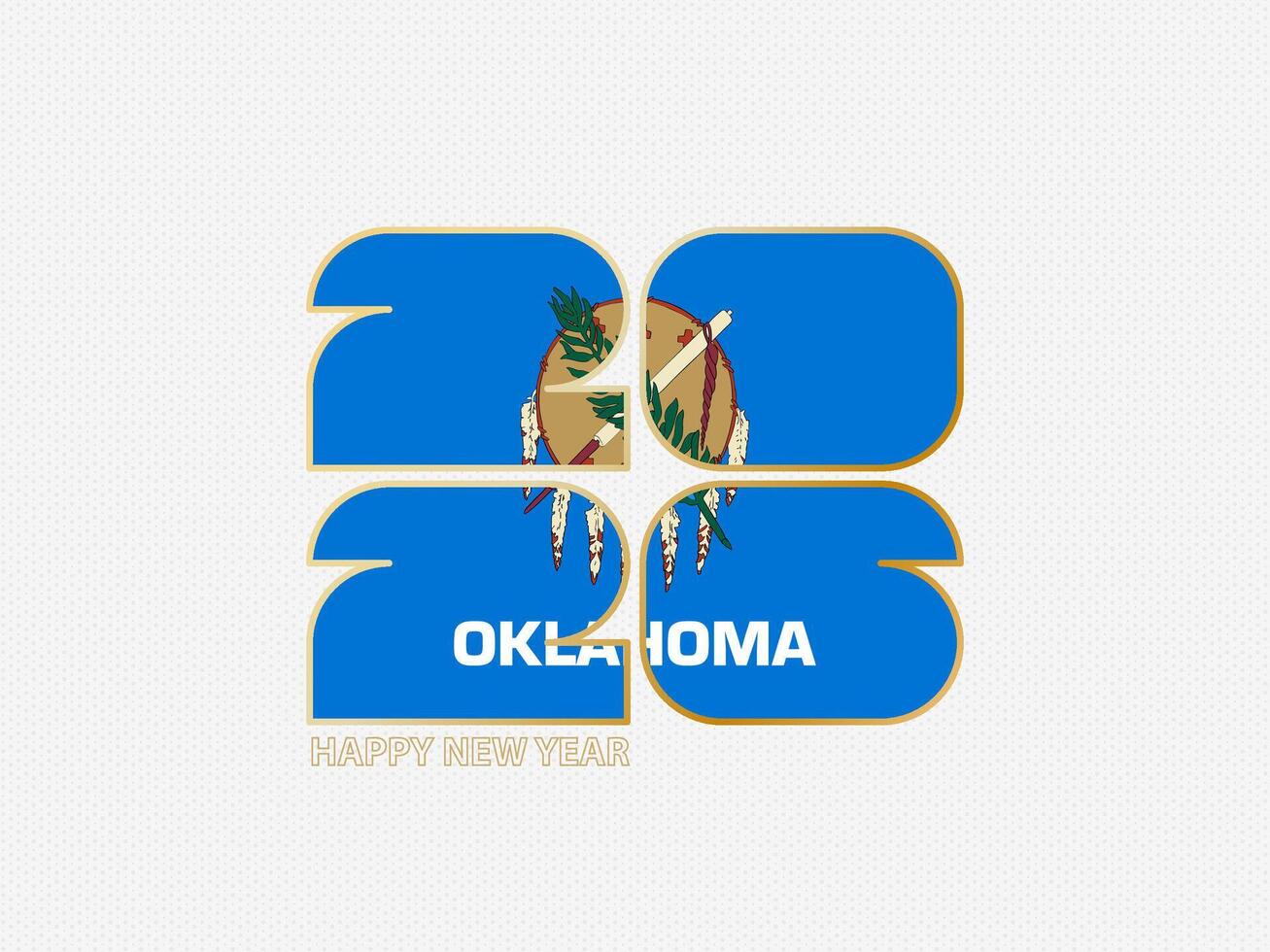 Abstract numbers 2026 with flag of Oklahoma. Pro Vector