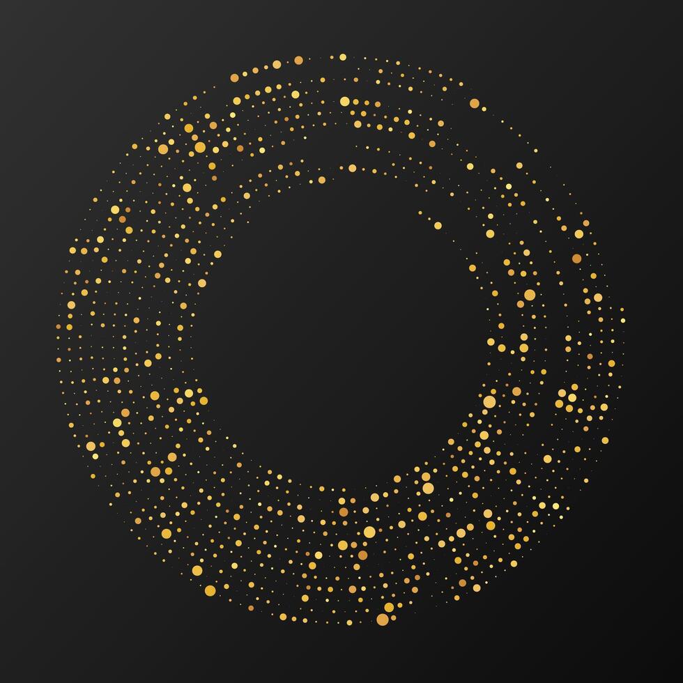 Abstract gold glowing halftone dotted background. Gold glitter modern pattern in circle form. Circle halftone dots. Pro Vector
