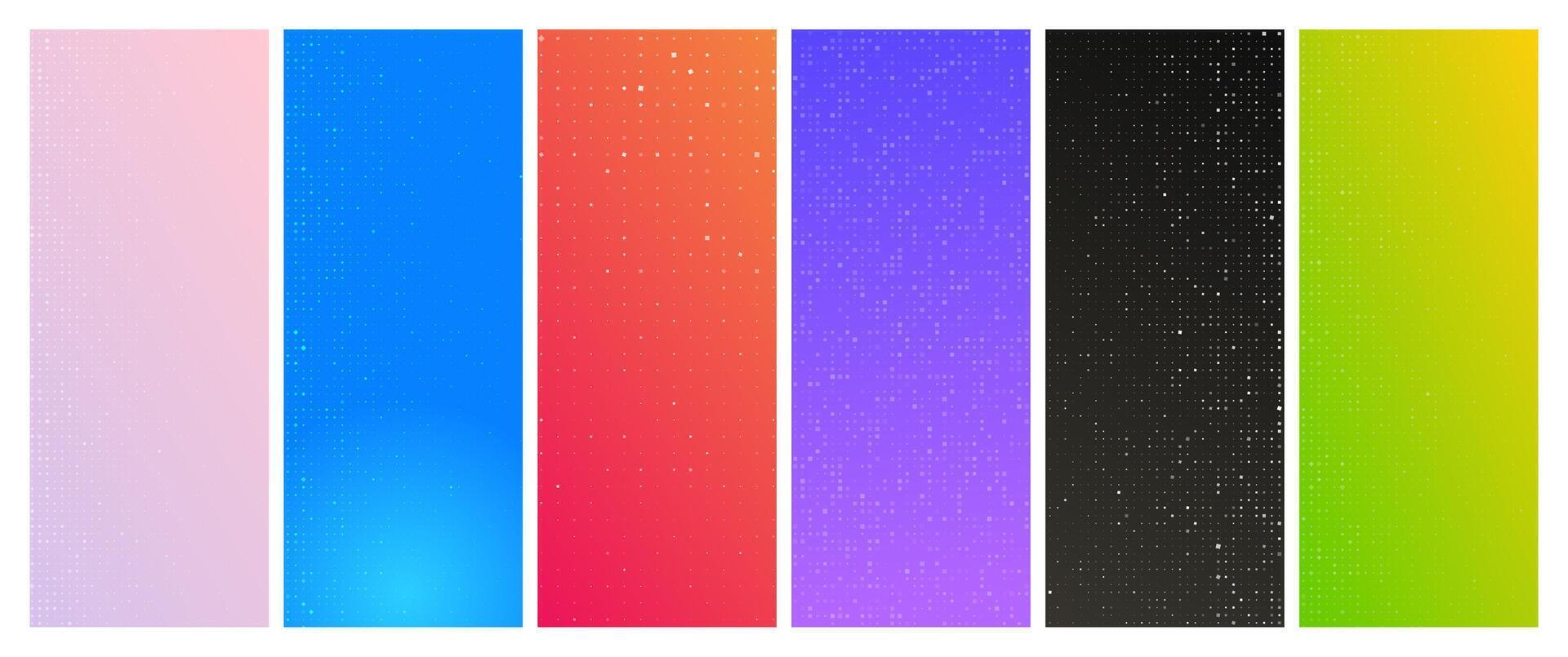 Set of six abstract gradient modern geometric backgrounds with squares. Pixel backgrounds with empty space. Pro Vector