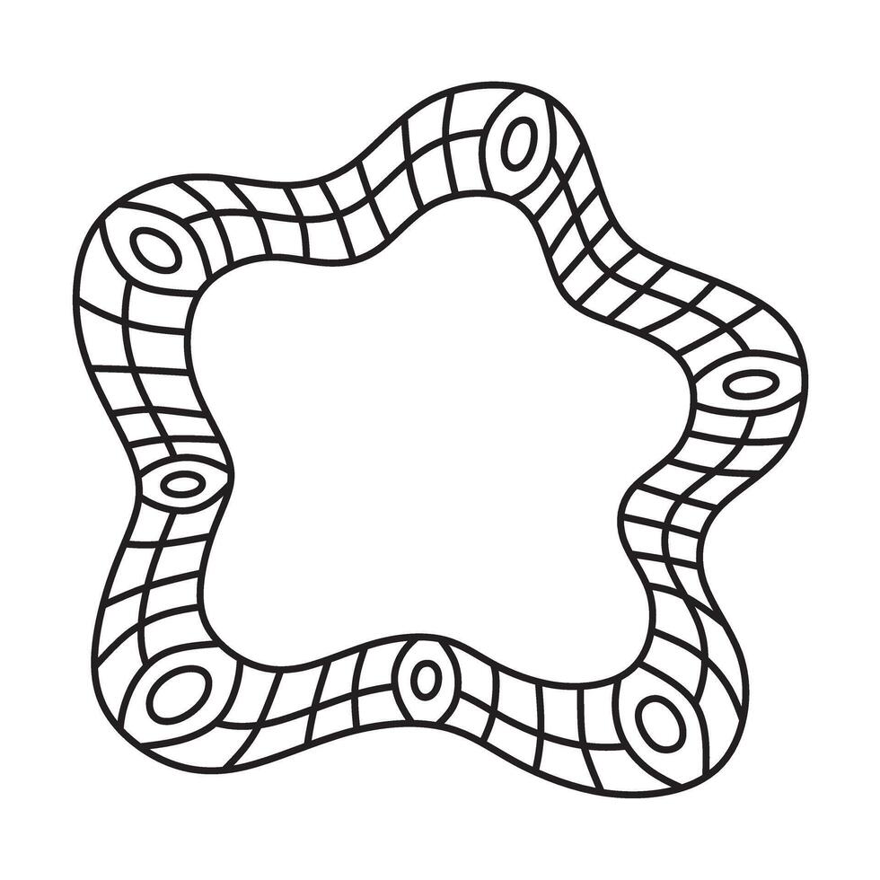 Round mosaic pattern with wavy border, mosaic frame tessellation, . Black and white border. Pro Vector